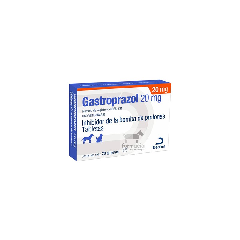 Inhibidor de la bomba de protones para el tratamiento de esofagitis, gastritis erosiva y úlceras gástricas. Fármaco de elección para el tratamiento de gastrinomas.Uso en: Caninos y felinos