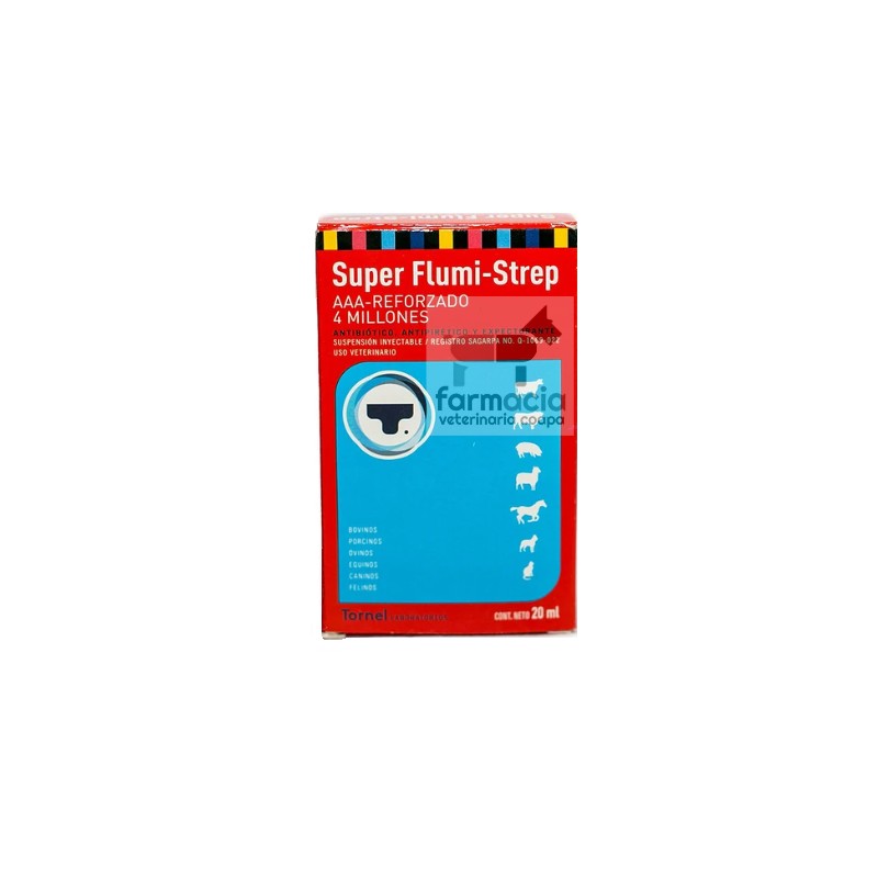 La combinación de penicilina procaína y dihidroestreptomicina tiene una acción sinérgica que hace que el producto sea un antibiótico de amplio especto con acción sobre gérmenes Gram positivos y Gram negativos. En la fórmula también aparece la flumetasona que es un antiinflamatorio muy potente que al ejercer su acción permite que los antibióticos aceleren su efecto sobre las infecciones.SUPER FLUMI-STREP AAA está indicado en el tratamiento de la fiebre de embarque, pasteurelosis, mastitis, metritis, infecciones del aparato respiratorio, tales como: neumonías e influenza
