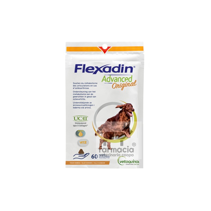 Vía oral. Los comprimidos masticables pueden darse directamente en la boca o mezclados con el alimento. Administrar 1 comprimido cada 24 horas, independientemente del peso del animal. Flexadin Advanced Original es inicialmente recomendado por un periodo de 3 meses.
